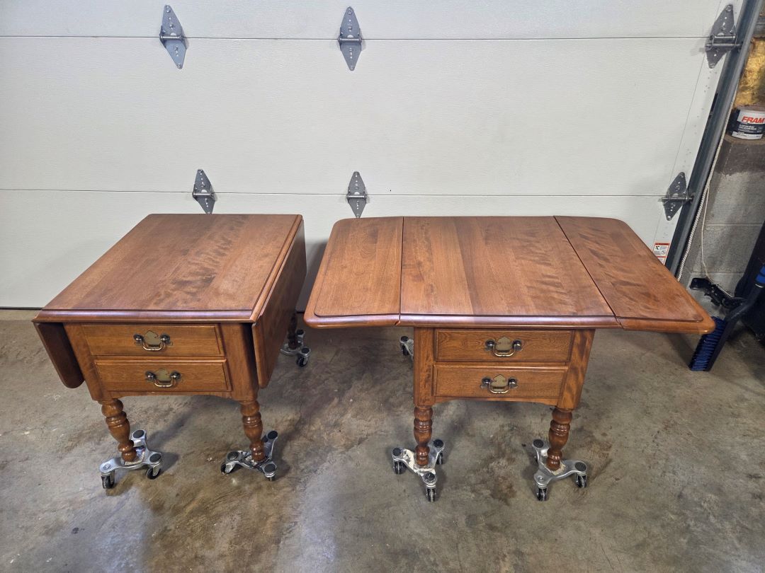 Ethan Allen Solid Wood Drop-Leaf End Tables – Pair